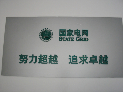 背景墻案例圖:按國家電網(wǎng)VI標(biāo)準(zhǔn)將標(biāo)志做成球形分塊模具;用樹脂材料注入模具摻入玻璃纖維,前后四層;毛胚標(biāo)志開模后進(jìn)行粗磨修形,精磨后進(jìn)行底漆、面漆4遍的打磨噴白色漆高溫爐烤后,單塊內(nèi)包裝,整體標(biāo)志獨(dú)立裝箱;中間內(nèi)圓與圈外中英文分開,標(biāo)志周邊小字、大字和英文字都用PVC結(jié)皮板雕刻再噴國網(wǎng)綠漆,底板采用鋁塑板;具有高強(qiáng)度,耐高溫,不變形,使用年限長等特點(diǎn)。